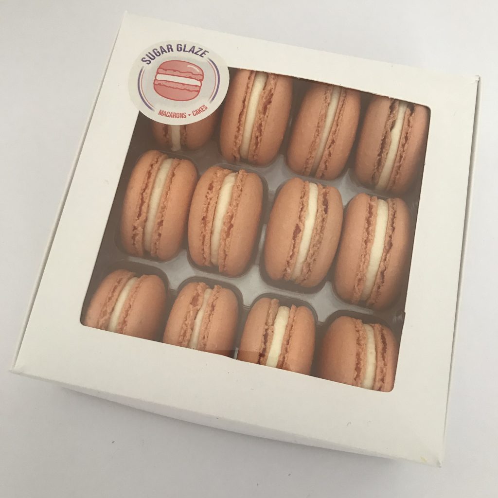 All our macarons will be packaged in boxes of either 6 or 12; should you order a box of 24, you will receive two boxes of 12. Each set of macarons are encased in the centre of two clear plastic trays, which are then placed into our branded Sugar Glaze Bakery boxes. We do as much as we can to ensure that your macarons arrive to you damage free.